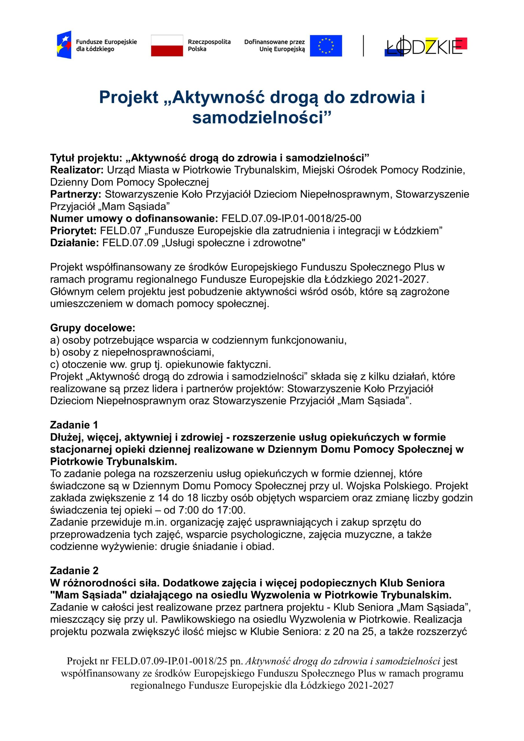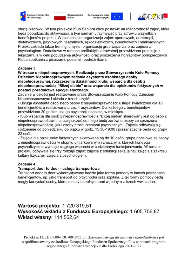 KLUB WSPARCIA DLA OSÓB WYMAGAJĄCYCH WSPARCIA W CODZIENNYM FUNKCJONOWANIU: